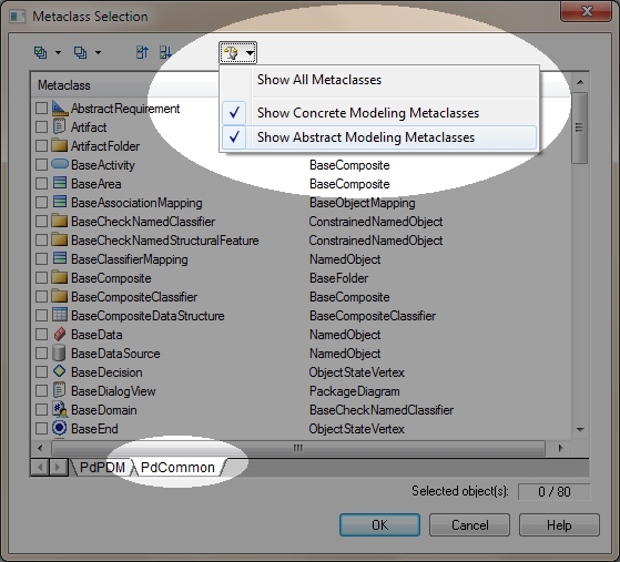 I’m assuming you know how to add an extended attribute, if you don’t you can get the official documentation here or follow Joel’s quick example here.  The only thing you’ll need to do differently is select the PdCommon tab and change the filter to “Show Abstract Modeling Metaclasses”.