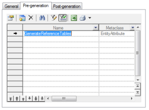 First step, add a transformation to the entity attributes metaclass and add some code. I won’t elaborate on the code since we’ve gone through this before. I’ll call my transform GenerateReferenceTable.