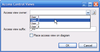 I’ve created “Place Access View On Diagram” as a boolean, and “Access View Suffix” as a string. “Access View Owner” needs to be a user defined in the model, so I’ve created it as a text attribute with a list of values. You can do this by clicking on the “Create” button next to the List of values: box on the attribute. When the template definition box pops up, enter this code in the editor: